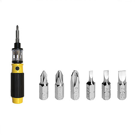 این پیچ گوشتی همه کاره انقلابی در تولید ابزار آلات بوده که با استفاده از آن شما 6 ابزار را فقط در یک دستگاه خواهید داشت. این ابزار قابلیت چرخش 360 درجه را دارا است که سبب شده تا شما به راحتی در هنگام کار با این محصول بتوانید انواع پیچ را باز و بسته نمایید.از دیگر ویژگی های این پیچ گوشتی دسته ارگونومیکی مخصوص آن بوده که از سر خوردن پیچ گوشتی از دست شما جلوگیری می کند. همچنین شما با این وسیله دیگر نگرانی ناشی از گم کردن ابزارهایتان نخواهید داشت و فقط کافی است سری مورد نیاز خود را انتخاب کرده و کار خود را انجام دهید. از این ابزار می توانید در منزل، ماشین و محل کار استفاده نمایید.