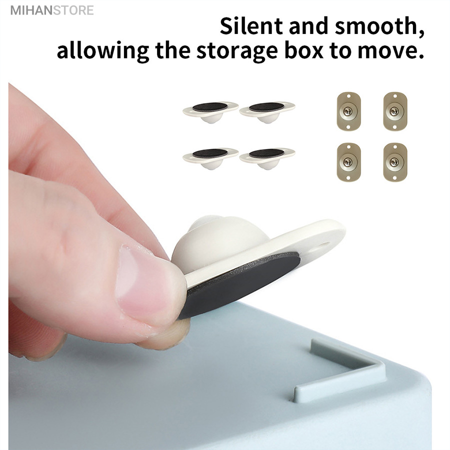 یک محصول خلاقانه کاربردی دیگر برای زندگی راحت تر! این محصول وارداتی و بسیار با کیفیت می باشد و جنس بدنه پلاستیک و جنس چرخ فلزی ضد زنگ بوده که با چسب دوطرفه قابلیت محکم شدن در جای خود را دارد، همچنین جای دو سوراخ پیچ تعبیه شده که بتوانید با پیچ در جای خود محکم کنید. هر چرخ قابلیت تحمل 8 الی 10 کیلو وزن را دارد و با توجه به اینکه در هر بسته 4 چرخ وجود دارد مجموع بسته ارسالی قابلیت تحمل وزنی حدود 40 کیلوگرم را دارد و شما با اتصال کردن این چرخ ها به وسیله خود به راحتی هر چه تمام می توانید آنها را جابه جا کنید.