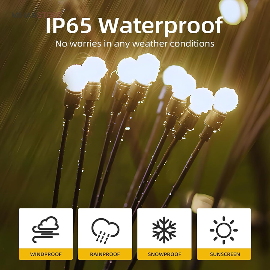 چراغ خورشیدی باغچه مدل گل شب تاب با طراحی جدید محصولی جذاب و کاربردی و ضد آب است.این چراغ با دارا بودن 8 لامپ LED از جنس ABS و بهره گیری از پنل خورشیدی خود ، انرژی رایگان خورشیدی را در طول روز در باتری داخلی خود ذخیره کرده و پس از غروب آفتاب با فرمان سنسور فتوسل موجود در پنل خورشیدی فعال میشود. محصول را میتوانید در هرجایی با نور مستقیم خورشید مثل حیاط ، باغ ، ویلا و بالکن نصب یا قرار داد و در طول شب از نور آن بهره برد. پشت پنل دکمه ON/OFF قرار دارد که با قرار دادن در حالت ON روشن و OFF خاموش میشود. شاخه های چراغ باغی شب تاب به هنگام وزش باد در تاریکی شب تکان میخورند، و با نور درخشان و زیبا، خانه و باغ شما را هر شب ستاره دار میکند و جلوه ای خاص به فضای باغ و ویلای شما میبخشد.